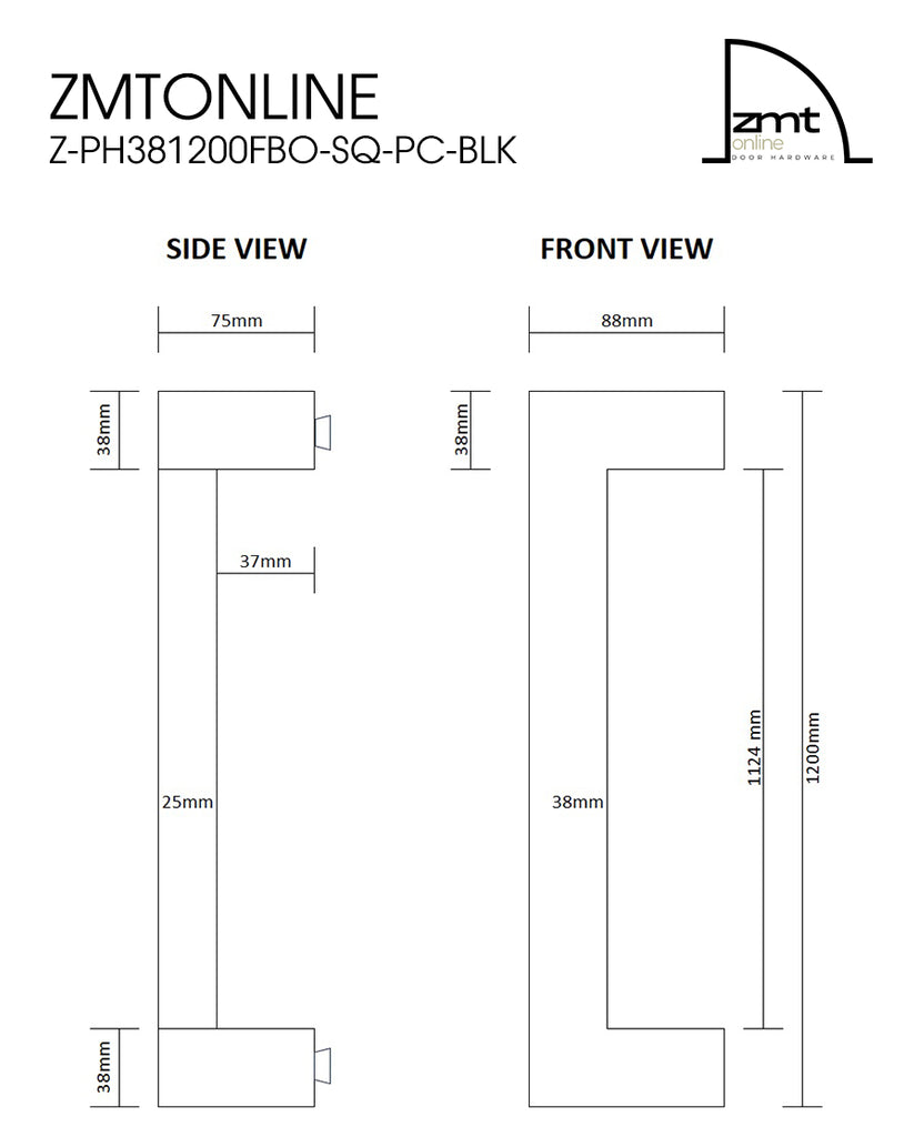 These 1200mm MATT Black OFFSET Entry Door Pull Handles are manufactured from premium quality 304 Grade Stainless Steel, with a MATT BLACK POWDERCOAT finish.