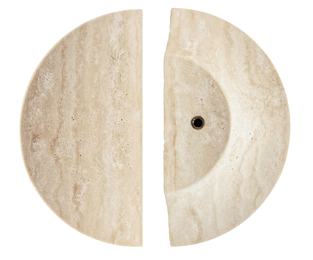 Natural Travertine Half Moon Entry Door Pull Handles (Pair) - MEZZA LUNA Stone Set