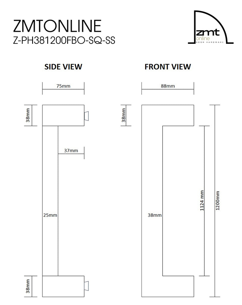 Stainless Steel 1200mm Square Offset Pull Handle - (Urban Series)